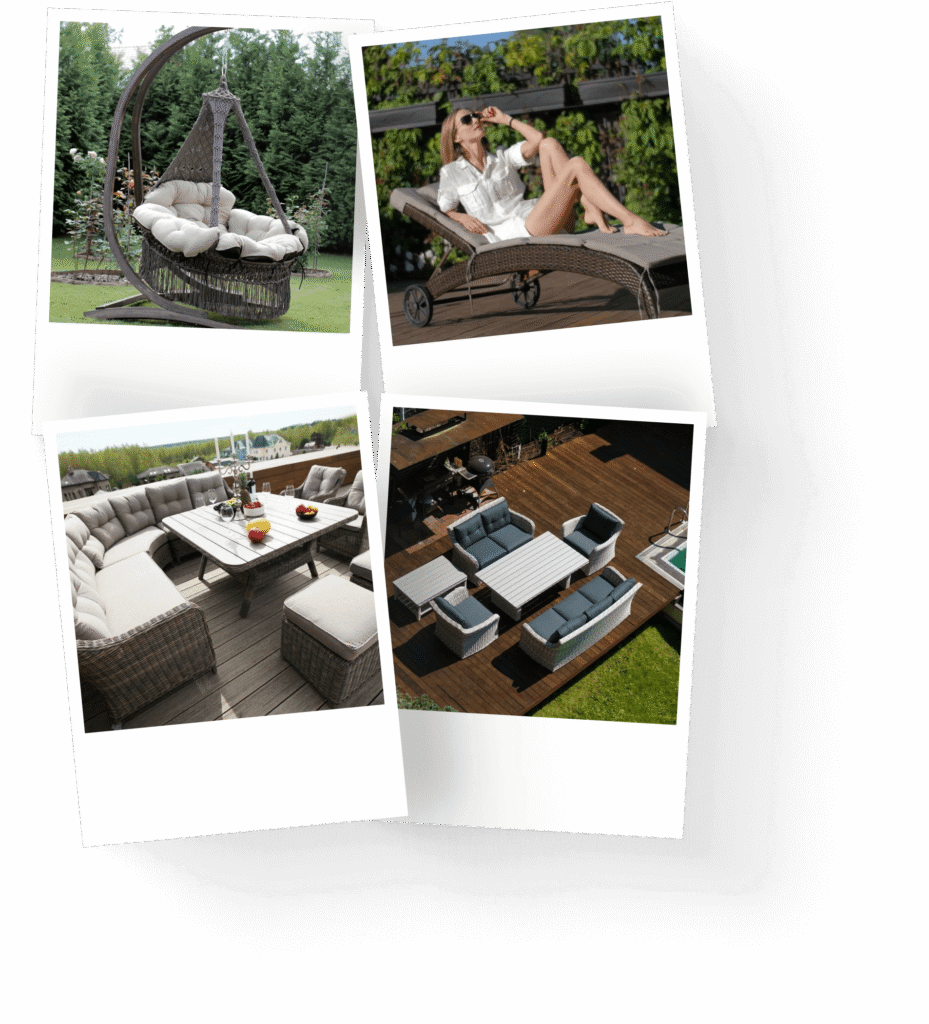 Наполнитель холлофайбер не впитывает влагу и держит форму. Кресла доступны в коричневом, чёрном и светло-коричневом цветах и дополнены двусторонними подушками в коричнево-бежевой гамме.